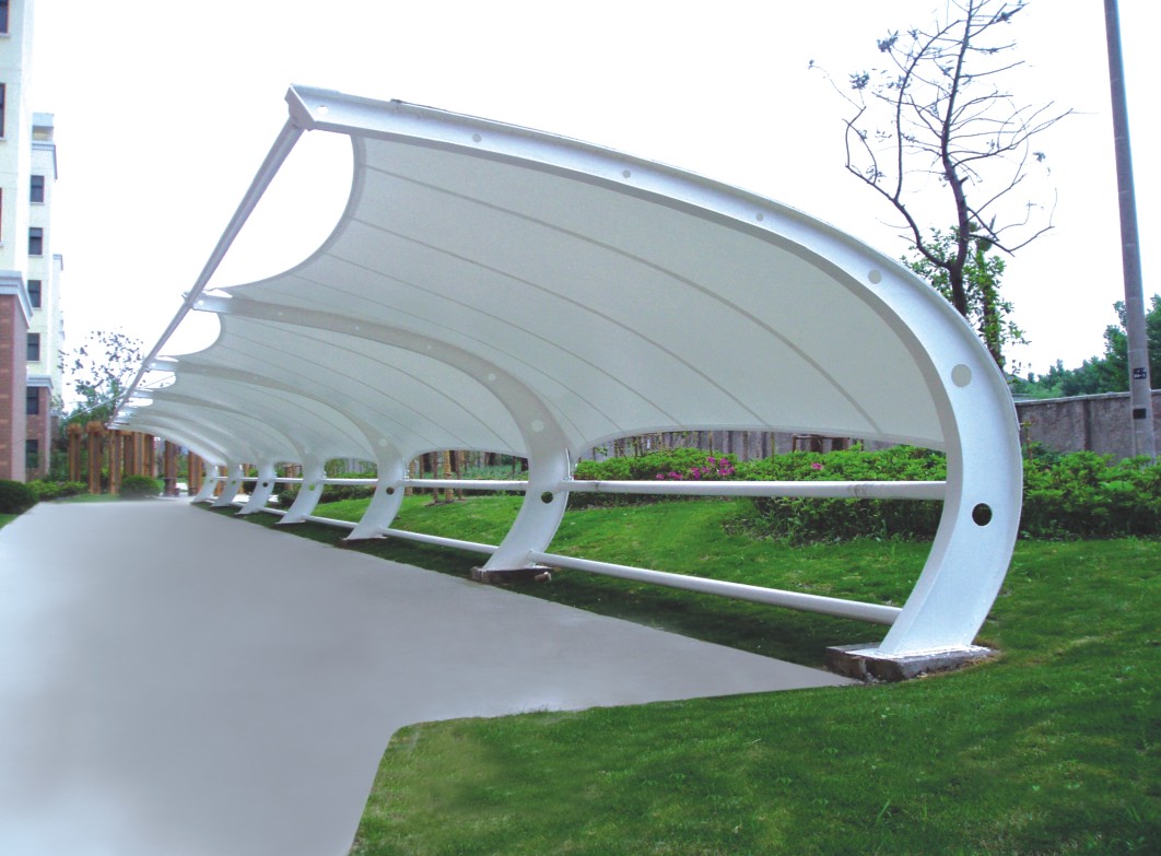 膜結(jié)構(gòu)停車棚的出現(xiàn),克服了很多老式車棚的缺點(diǎn),膜結(jié)構(gòu)停車棚的篷布材質(zhì)是膜材料,而膜材的最大特點(diǎn)是強(qiáng)度高、耐久性好、防火難燃、自潔性好,不受紫外線影響。膜結(jié)構(gòu)